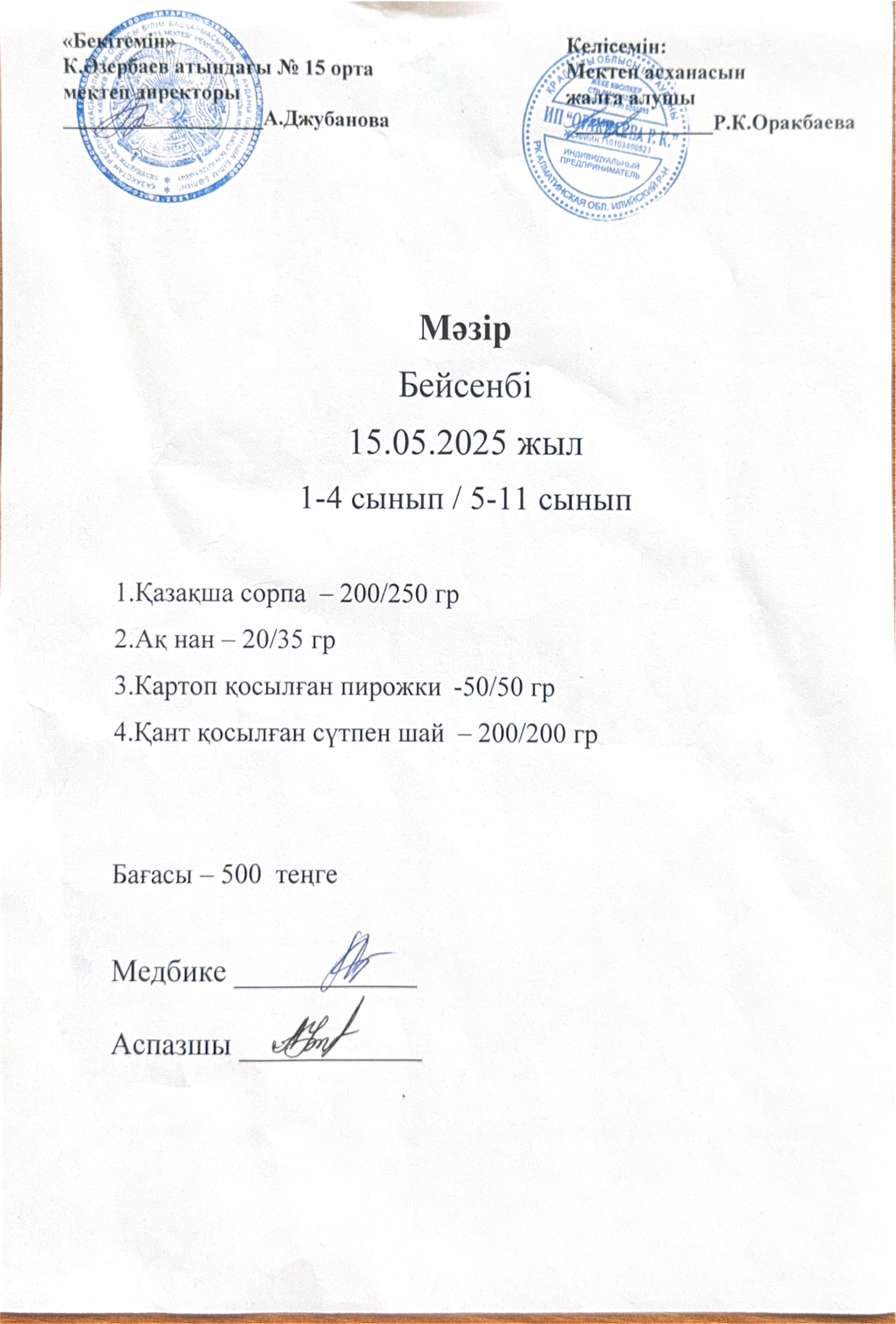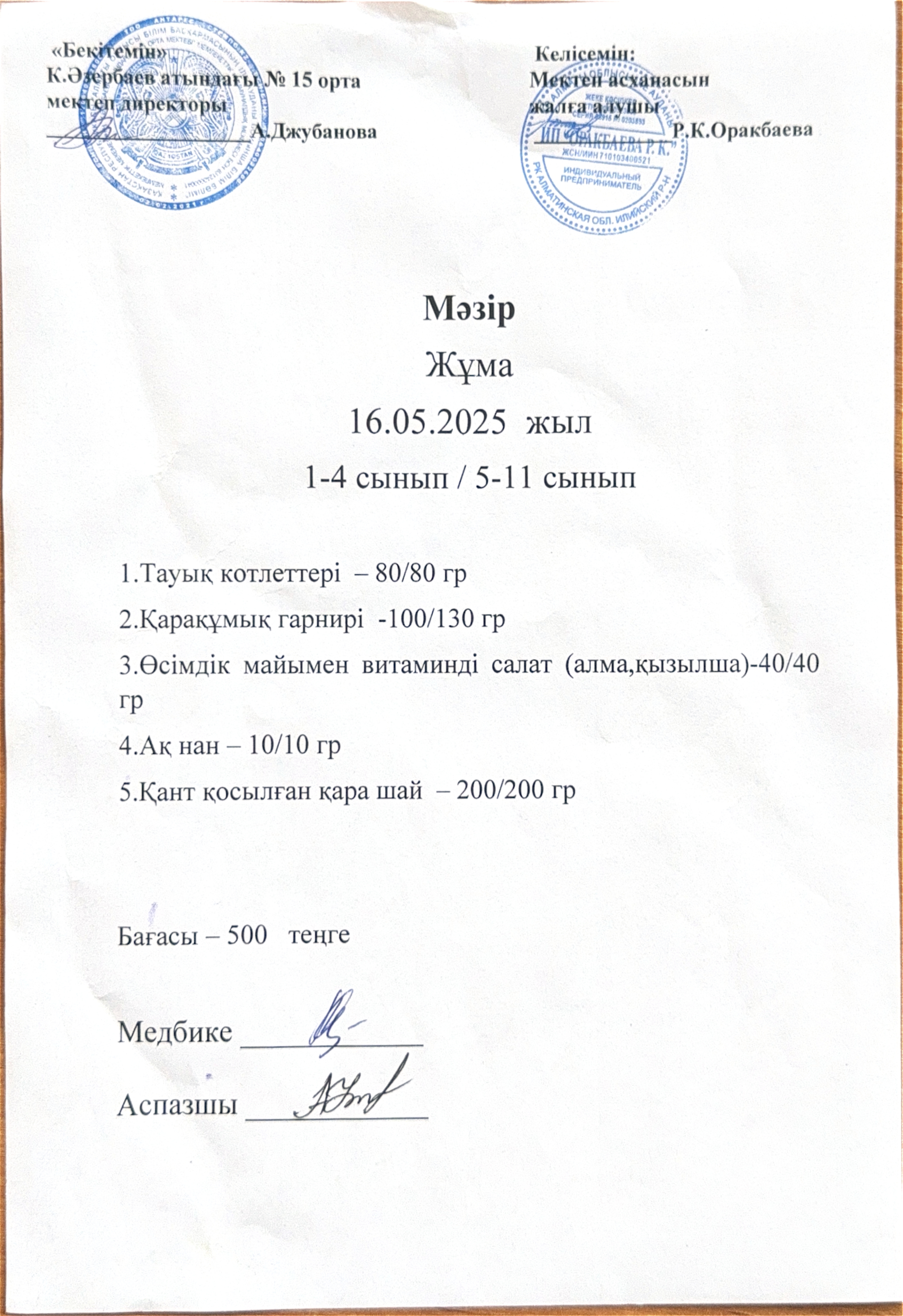 Ас мәзірі. Меню на неделю. 12.05-16.05.2025 » №15 ОРТА МЕКТЕП