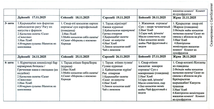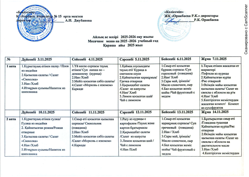 Қараша айы, Ас мәзірі » №15 ОРТА МЕКТЕП